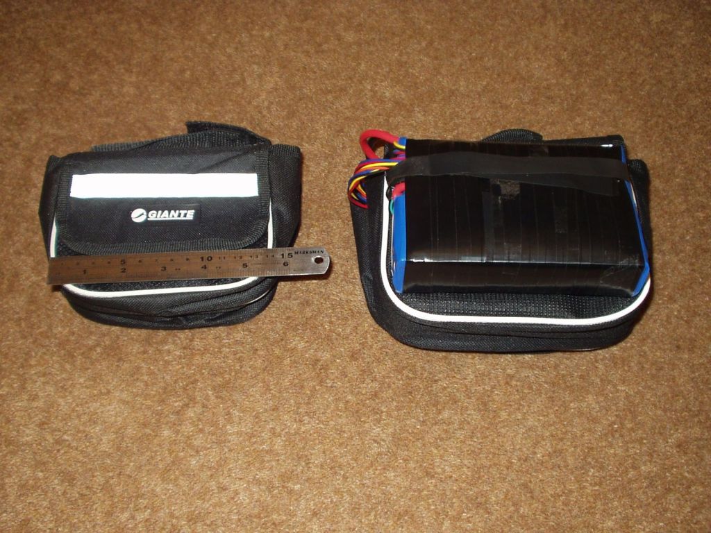 Incidentally, the frame pannier was originally purchased so I could make up a second 14 cell pack, but when it arrived it was too small for the batteries to fit into, as it was considerably smaller than the first one I purchased from the same seller, even though the auction details were still identical.