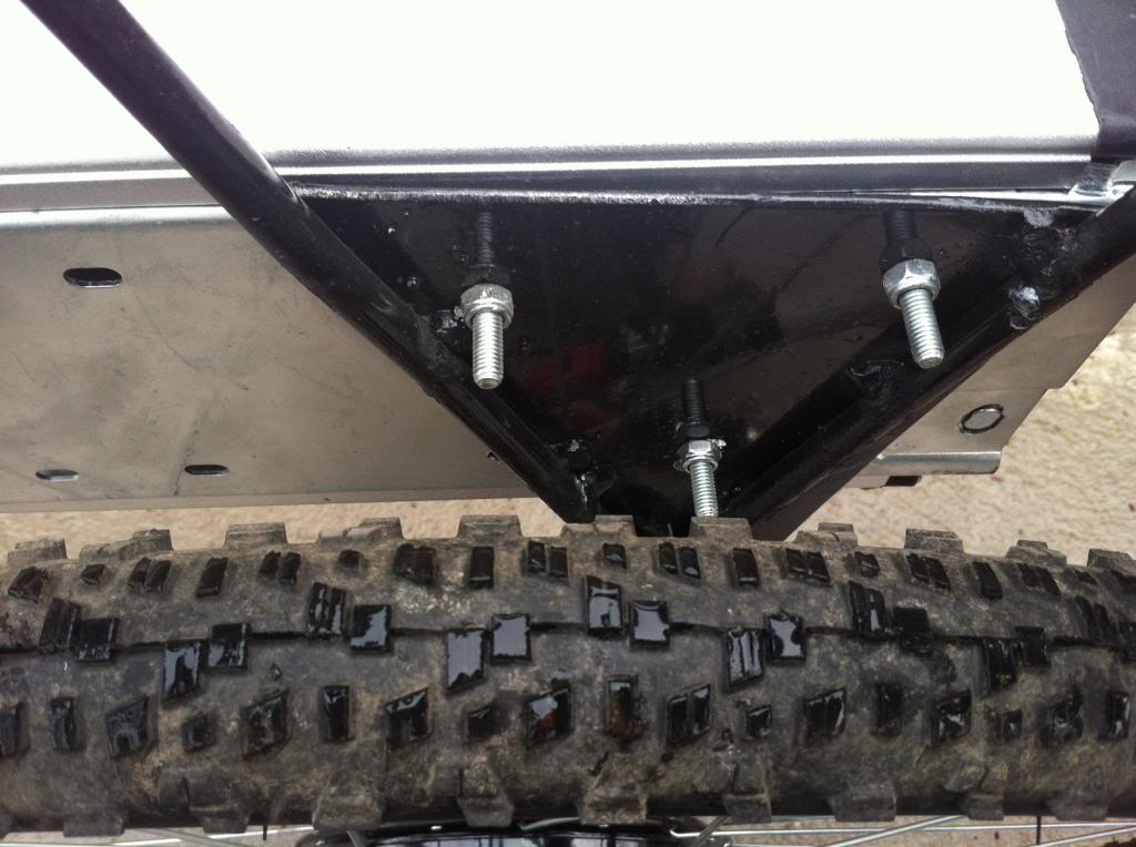 Plus small triangular plates down this inside of the rack to make the bottom as strong as possible. Just need to drill two new holes and paint it up again.