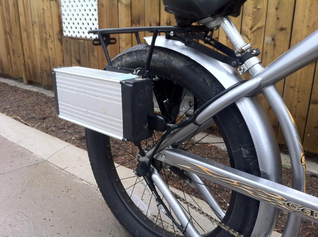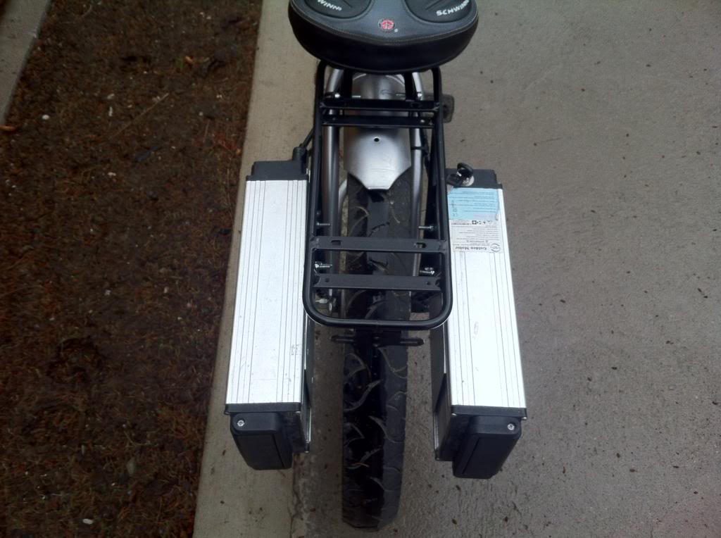 Well I thought having aluminum plates added to the sides of the rack would make it strong enough to mount my batteries nice and low. Turns out that I actuall made a weak point in the rack right where the plates ended. My bike fell over in the grass and when the battery hit the gound it bent the rack in right when the plate ended.