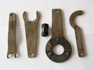 (E) "C" spanner used for undoing and tightening locking rings as in 2nd photo down from the top.