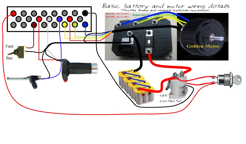 Throttle, Brake switch, reverse switch and Motor Hall Sensor Black leads must be grounded to B-.