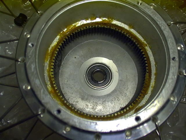 Trying to explain how a mini geared hub actually works is not going to be very easy, but I'm going to do my best with the aid of these lovely photos that Russell has conveniently posted on the Endless-Sphere forum, and I'm sure he won't mind his pictures being put to good use. ;)