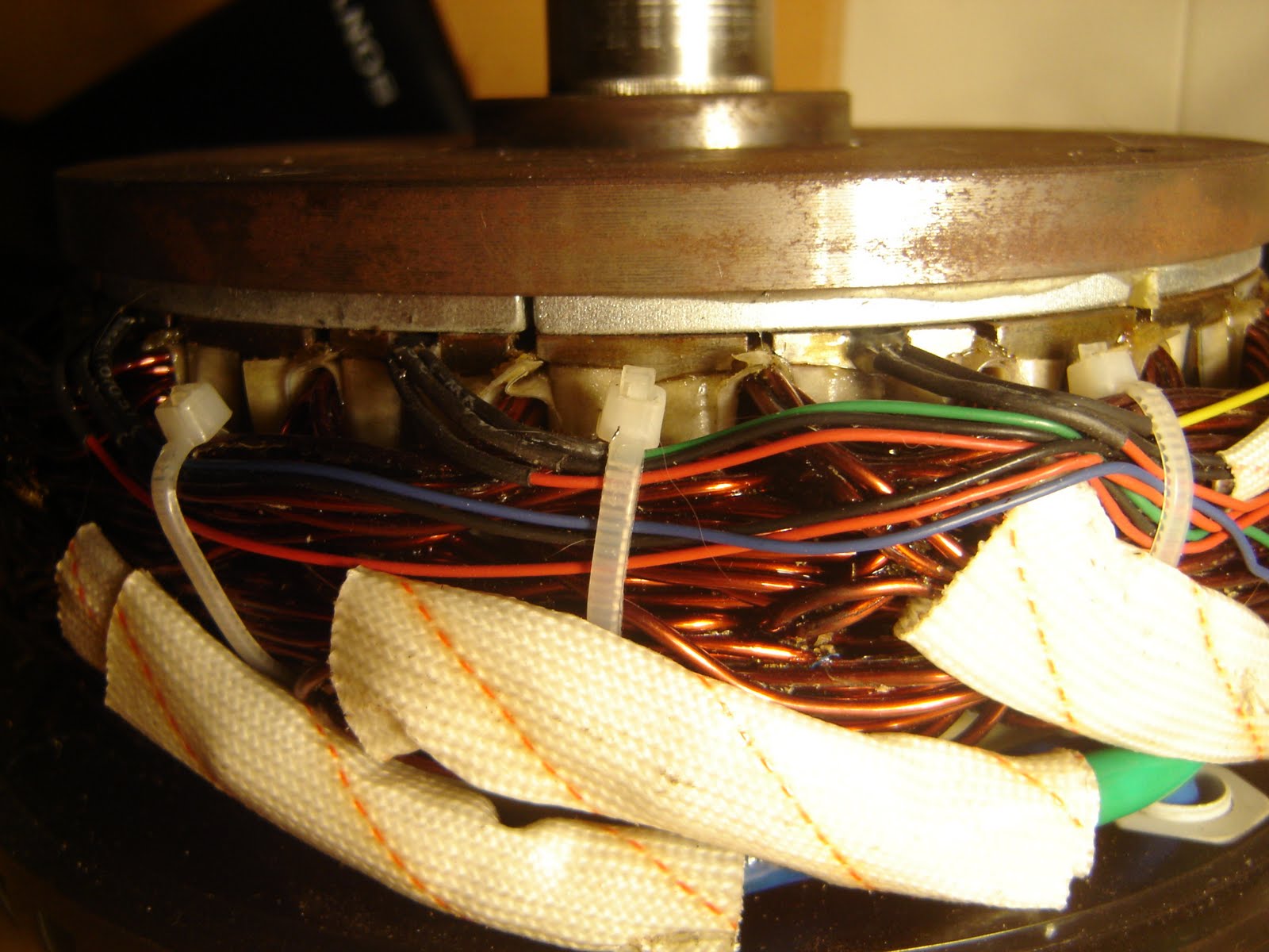 you can see the stator magnets have a gap between them and the coil. In the second image you can see that on the other side the magnets are pinched up against the coils. I am guessing that is why the axle will no longer turn freely.