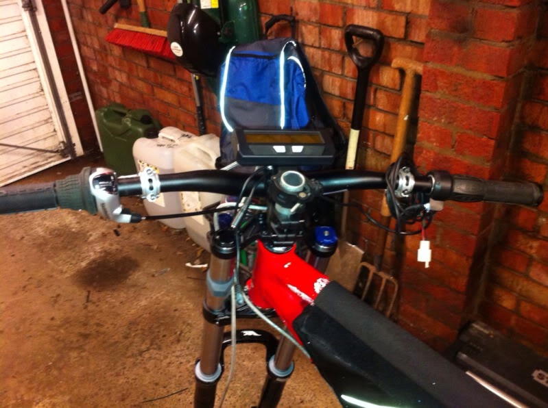I have left the neck of the forks uncut at present so I can fit the cycle analyst in a central position. I have just a half twist throttle and a rear gear changer on the handle bars.