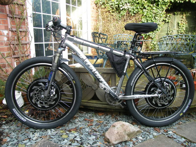 Dual mini motors.  A nice 'civilised' ride. I was lucky enough to get a bespoke battery pack made by a friend and forum member Dirtyginge, aka Paul. I was never happy with a rear mounted pack.