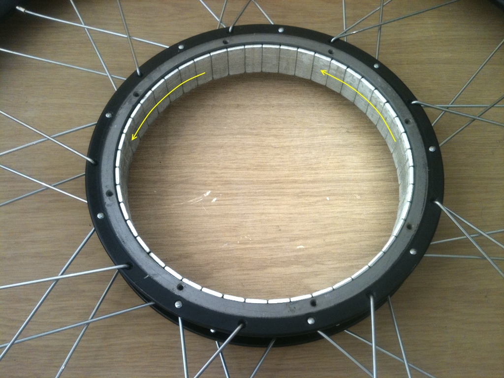 Magnets on motor ring are a bit covered by a white substance but it all magnet are same. I didn't found one point which looks different from the rest. Neither on the stator side...