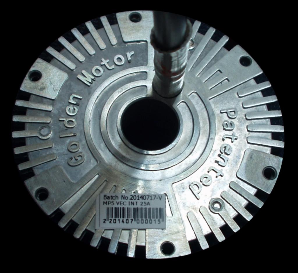 If you're lucky, you may be able to read the details through the slots in the cooling fan/brake disc mounting unit.