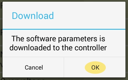 You should now see the following message pop up on screen, confirming that the parameters in the controller have been successfully modified: