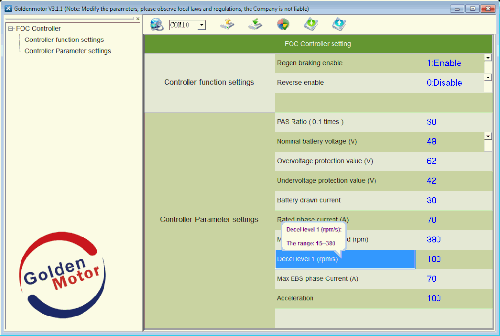 ** Is there any other way using application / software to change a parameter without having to disconnect the cables and stopping the bike will be a gradual rather than a suddenly?