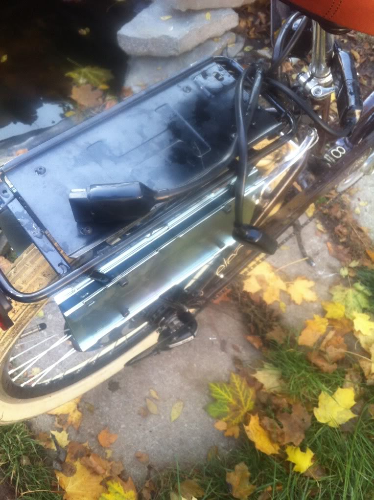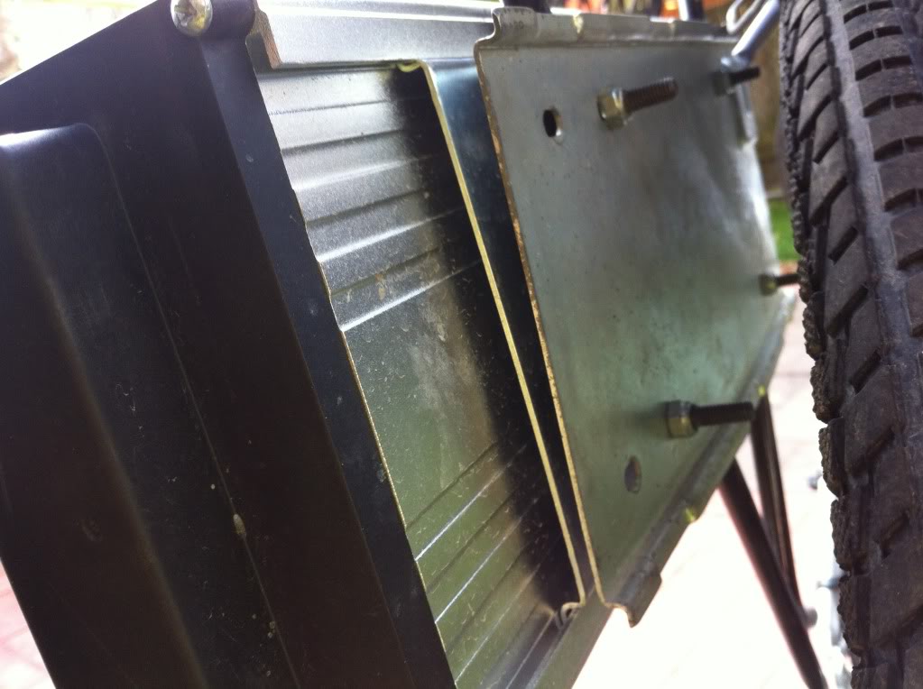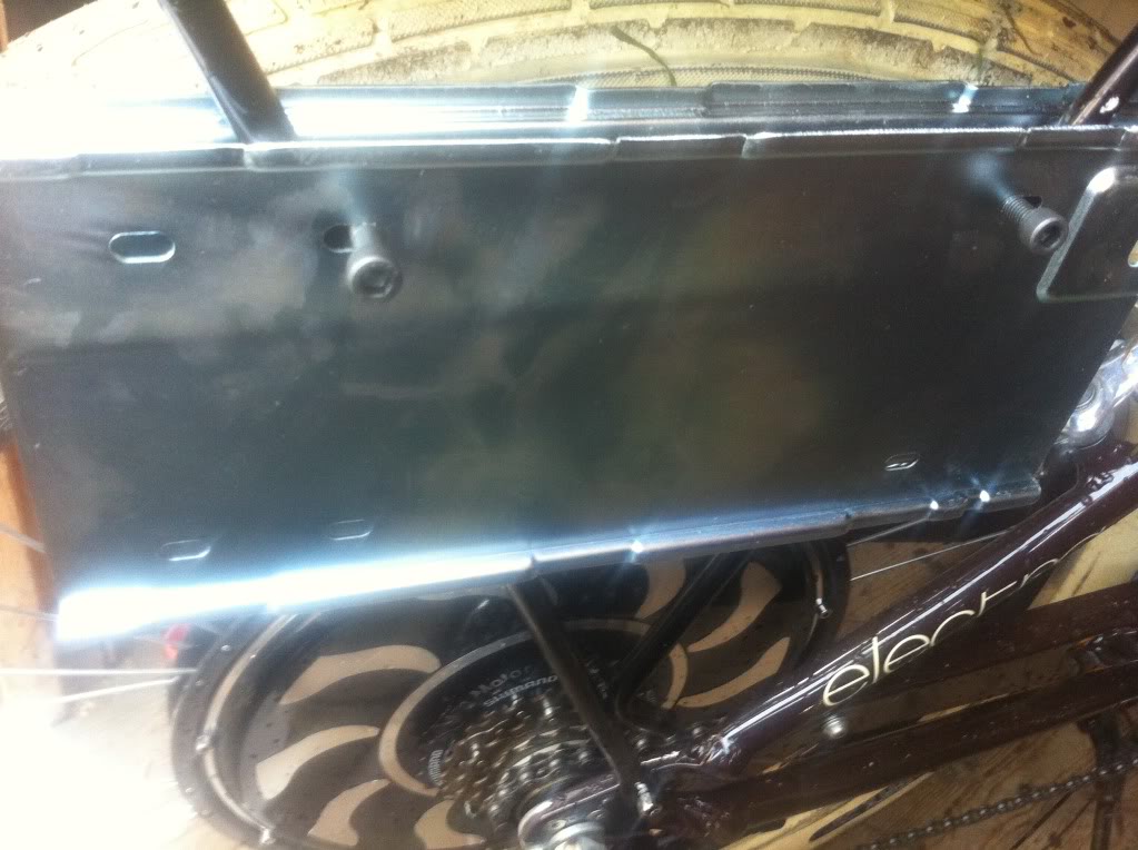 I didnt want to slide off the batteries as everytime its done the plates get a little looser and eventually the battery rattles on the plate. There is nothing as tight as the first time you slide the battery on. Anyway as you can see my method was to just bolt two plates back to back pinching the rack on each side. The two top bolts on each side are resting on the bars preventing any downward slide. Here are a few more pictures from the ride just for fun..