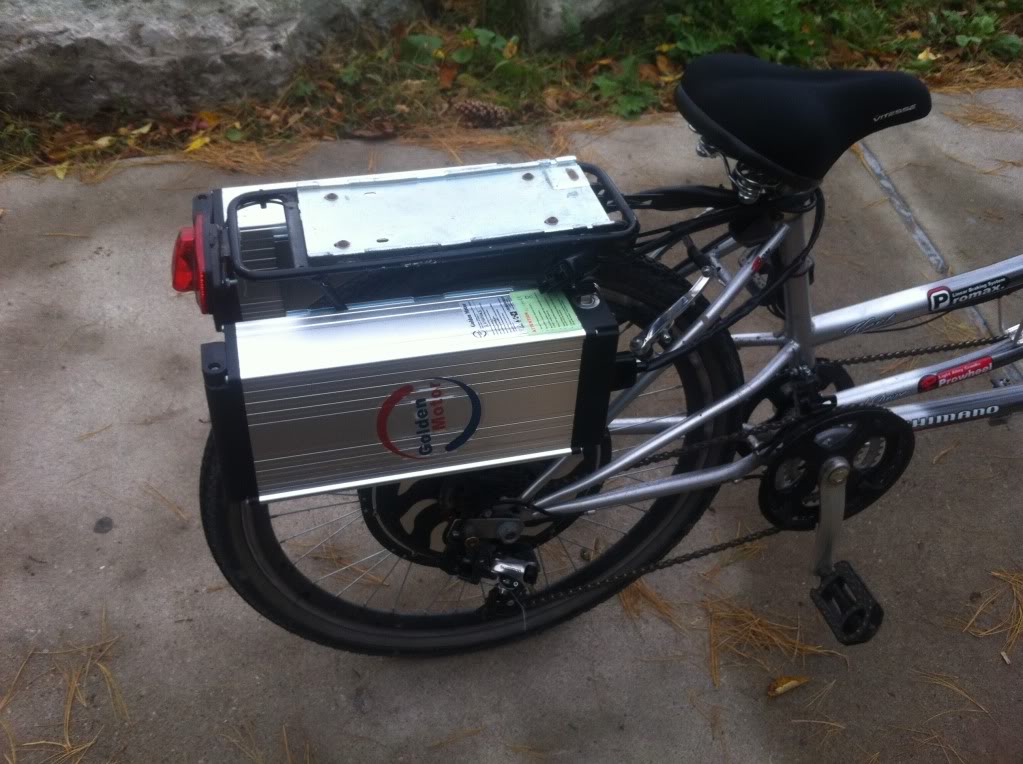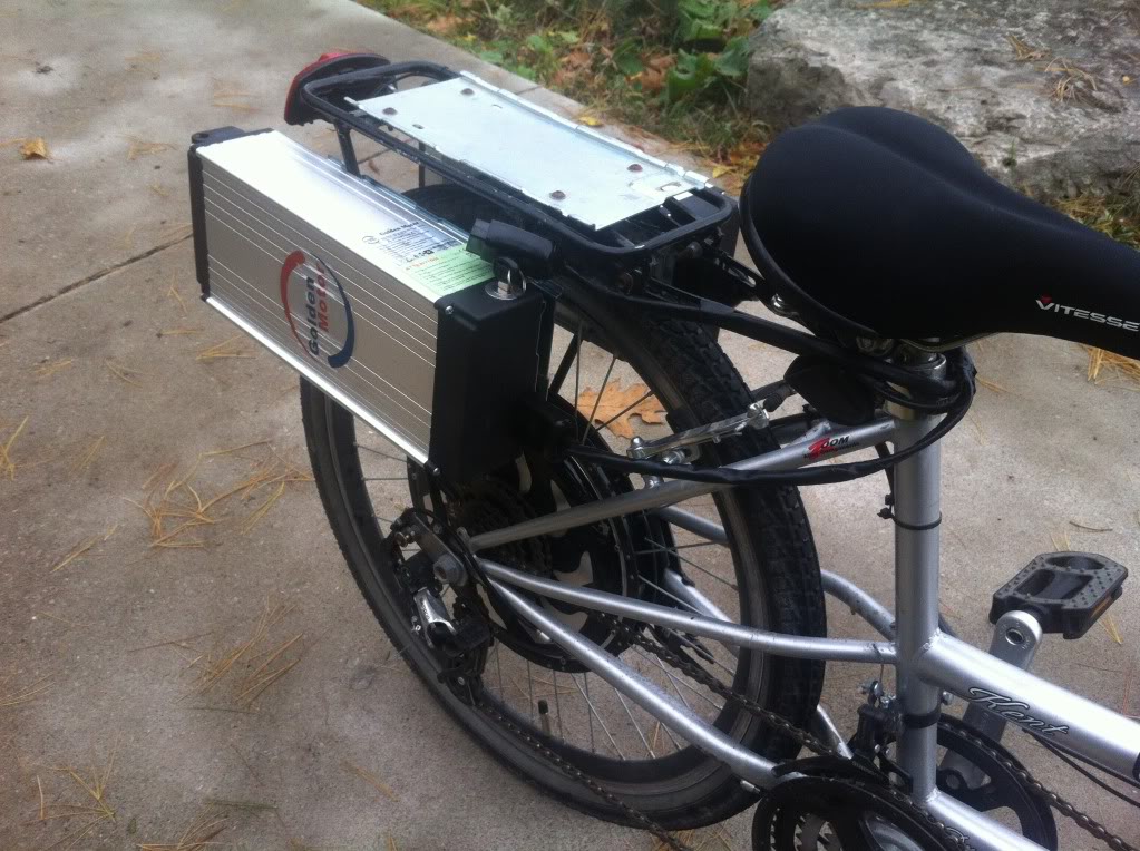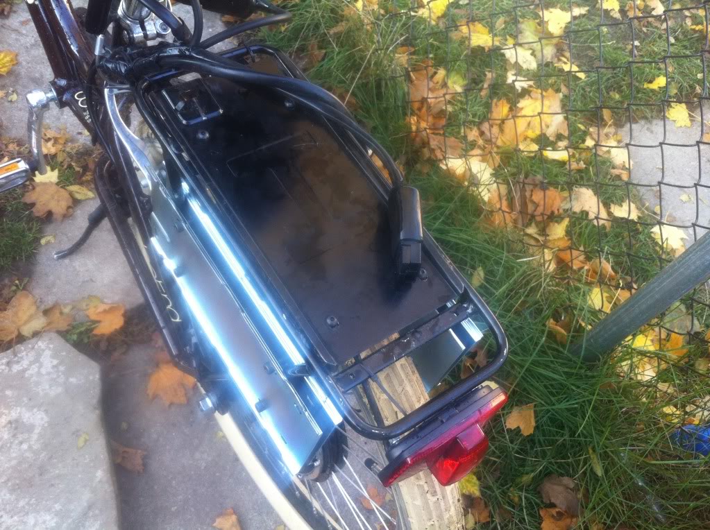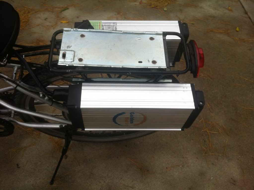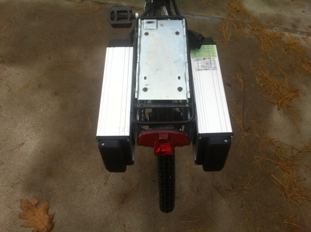 Just thought I would add in a photo of my regular battery setup. This does seem to be a good way of getting 48v20ah in a reasonably strong setup with a slightly lower center of gravity then on top of the rack.