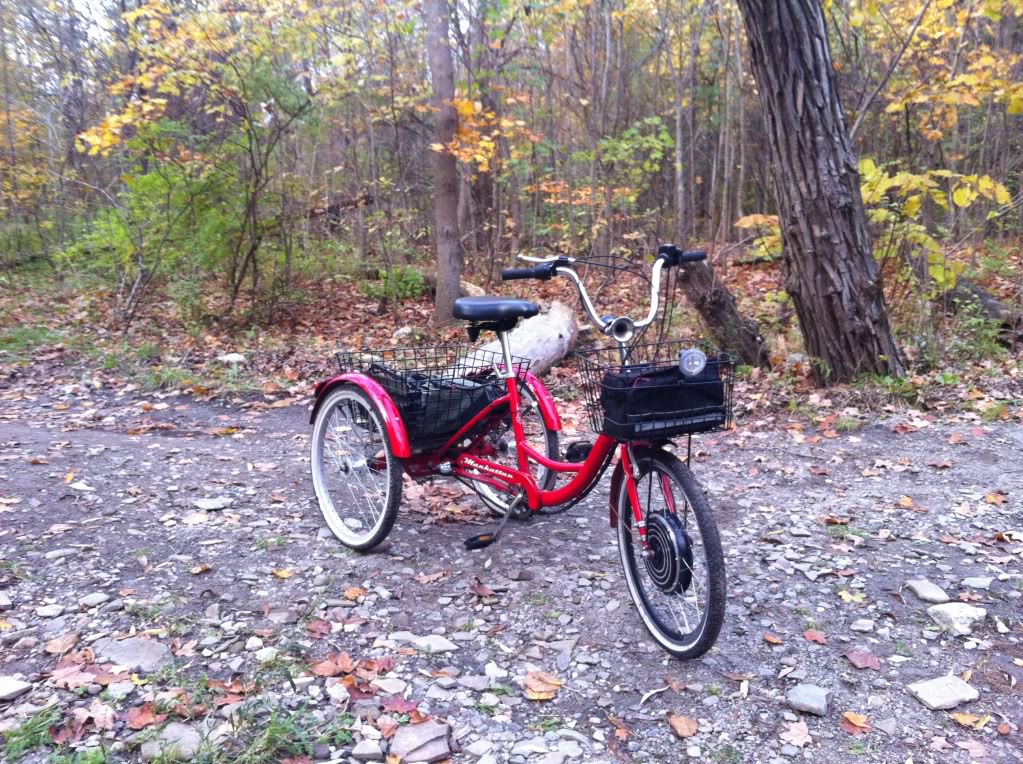 Yes there was a 16 inch external pie on the trailor. I removed it for using the trailor with the tandem bike as I didnt want to rewire the tandem I still have the motor and am keeping it for future use. Since adding the dual battery rack on the tandem I don't think I will need the trailor on it any more. I am sure by spring the Motor will be back on the trailer and the TRI-PIE will live again!