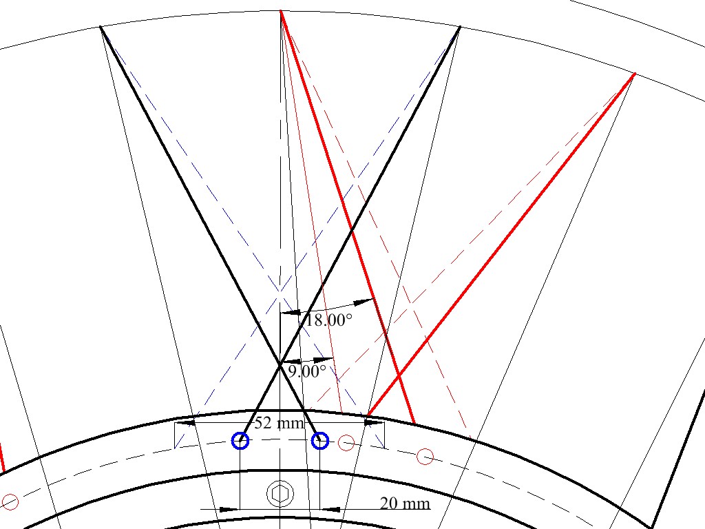 In which case 140mm is going to be much too long as the dotted lines in the picture indicate where the 130mm spokes were fitted on the original MKI Pies. The excessive angle between the spoke and the rim will also cause the spokes to be curved rather than straight.