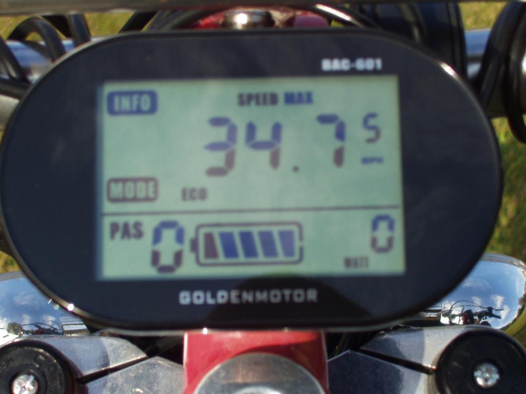 The pedal assistance is automatically turned off when level "0" is selected, but when needed, you can select an assistance level of anywhere between 1 and 5 by simply pressing the up or down buttons. Although with my current power settings as high as they are, the wheelie machine can be quite dangerous to use at slow speed on setting 3 and above. If I start to pedal a little bit too hard, the front wheel lifts up very quickly. Although I instinctively stop pedalling immediately, the slight delay in the pedelec power cut off means that the wheel just keeps on lifting, and if I don't grab the brake levers quick enough it will actually flip me over backwards. But to be fair, this would not happen on a more conventional bike: