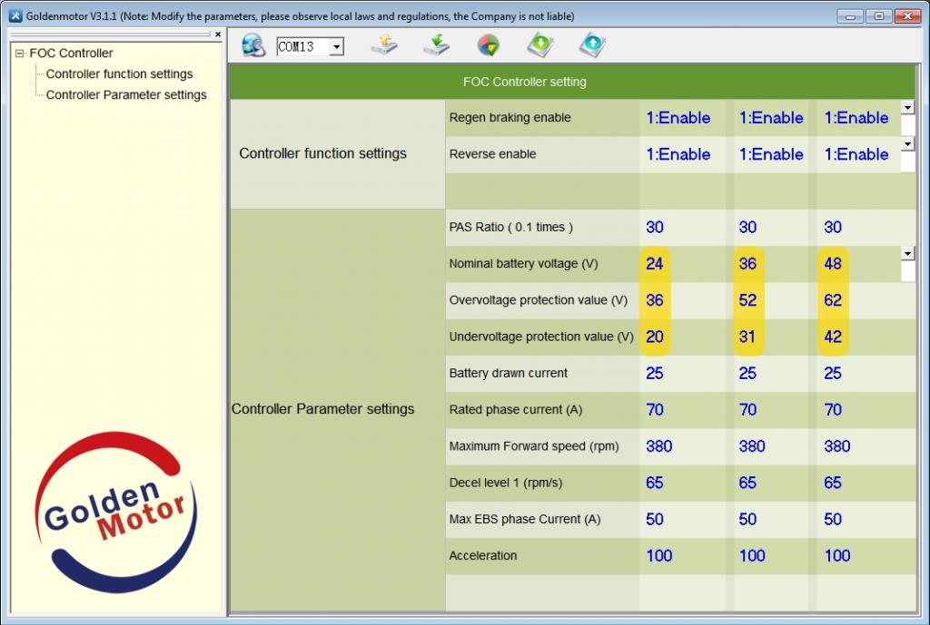 with the correct controller voltage settings, it could be a poor battery connection to the front motor, a fault with the Hall sensors, faulty controller or a fault with the front motor controller harness.
