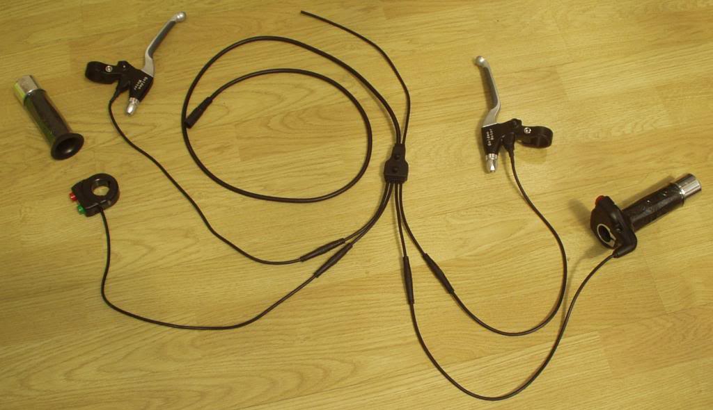 The horn switch on the handlebars can be connected to the brake wire to allow regen braking to be used, but this would not comply with the legal requirements as the power to the motor should be cut when