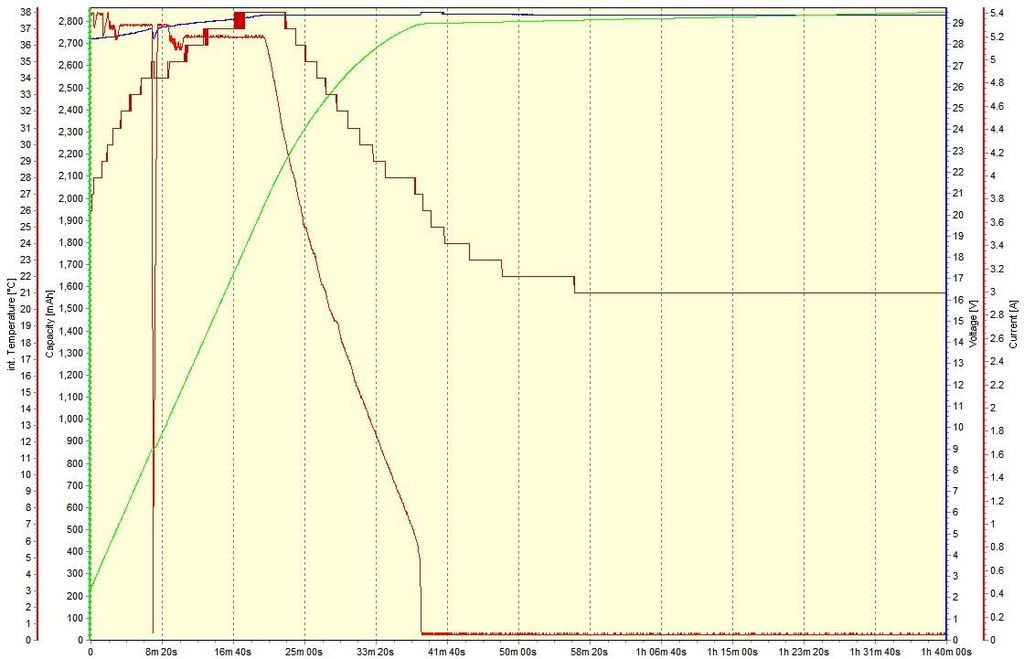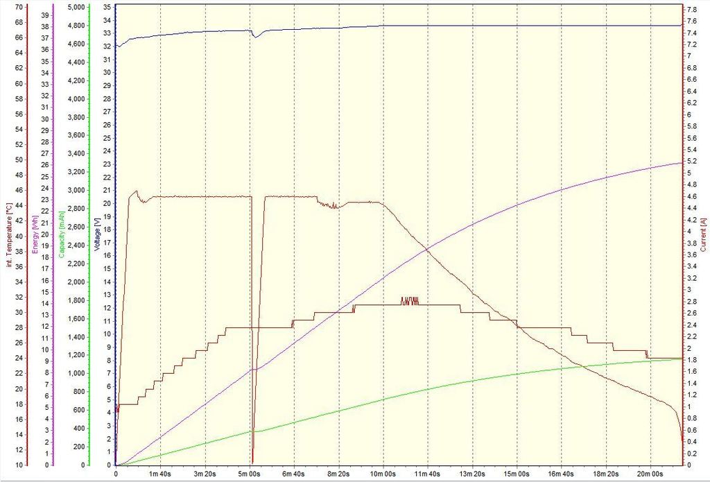 The following graph is of an 8 cell 5Ah LiPo pack being recharged after using just over 1 Ah capacity:
