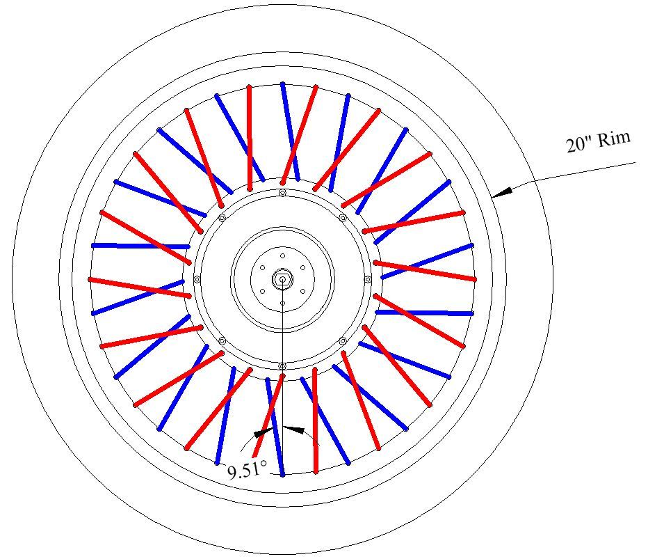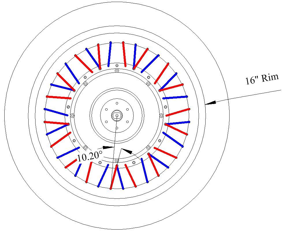 Installing the Smart Pie into a 16" rim could be achieved by drilling another 36 holes in the hub flanges to keep the spoke angles within an acceptable range as shown here: