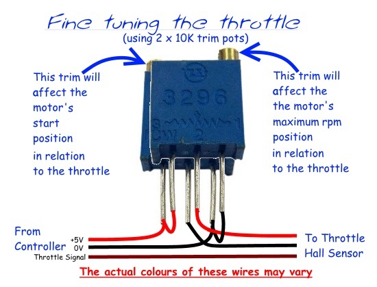 But if your +5V output is already too low to achieve full throttle (3.25V output signal) the additional 5k Ohms load (2 x 10k Ohms resistors in parallel) could possibly pull the +5V supply down slightly and decrease the maximum rpm even further.  ::)
