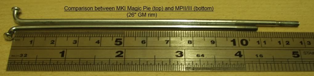 If you take a look at the picture below you can see that the MPII and MPIII use exactly the same length 110mm spokes for the GM 26" rim as the MP4 and MP5: