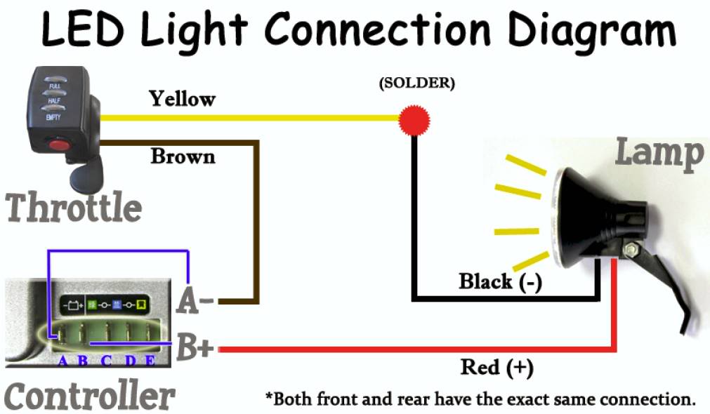 It would be a good idea to put a 1Amp inline fuse on the Positive headlamp supply lead close to the controller as per this modified diagram: