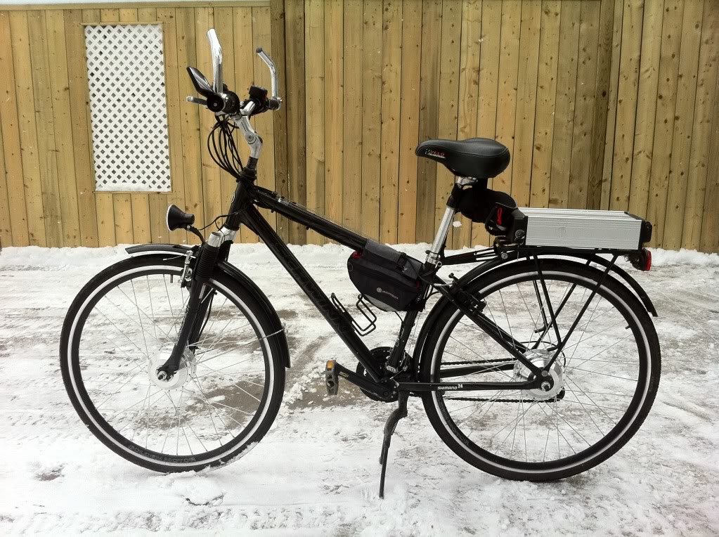 Thanks for that. I have always liked this bike I have had it a long time. I actuallly had 5700 miles on it with pure pedal power before I converted it with a 48v1000w GM kit. You can see how it looked back at the beginning of this thread. It was my first ebike build. Then I put about 800 more miles on it before I switched to my joy-ebike. This bike sat pretty much unused (except for the occasional test run) while my Joy-eBike morphed from a 500 watt HBS to a 1000 watt HBS, then to a Magic Pie, then Dual Pie, then to the dual pie, dual battery, dual Cycle Analyst and even dual headlight with trailor. Seems like this one sat there quietly waiting for me to come back to it. Now I have a rebuilt it to this. Seems I have two opposite ends of the rainbow now in my two dual drive bikes.
