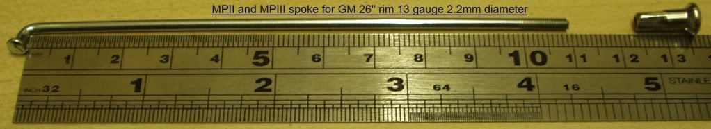 The factory fitted spokes are 110mm long when measured from the inside of the elbow: