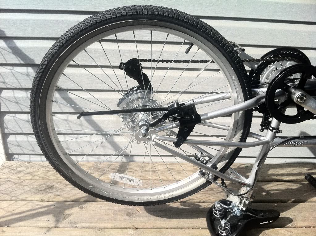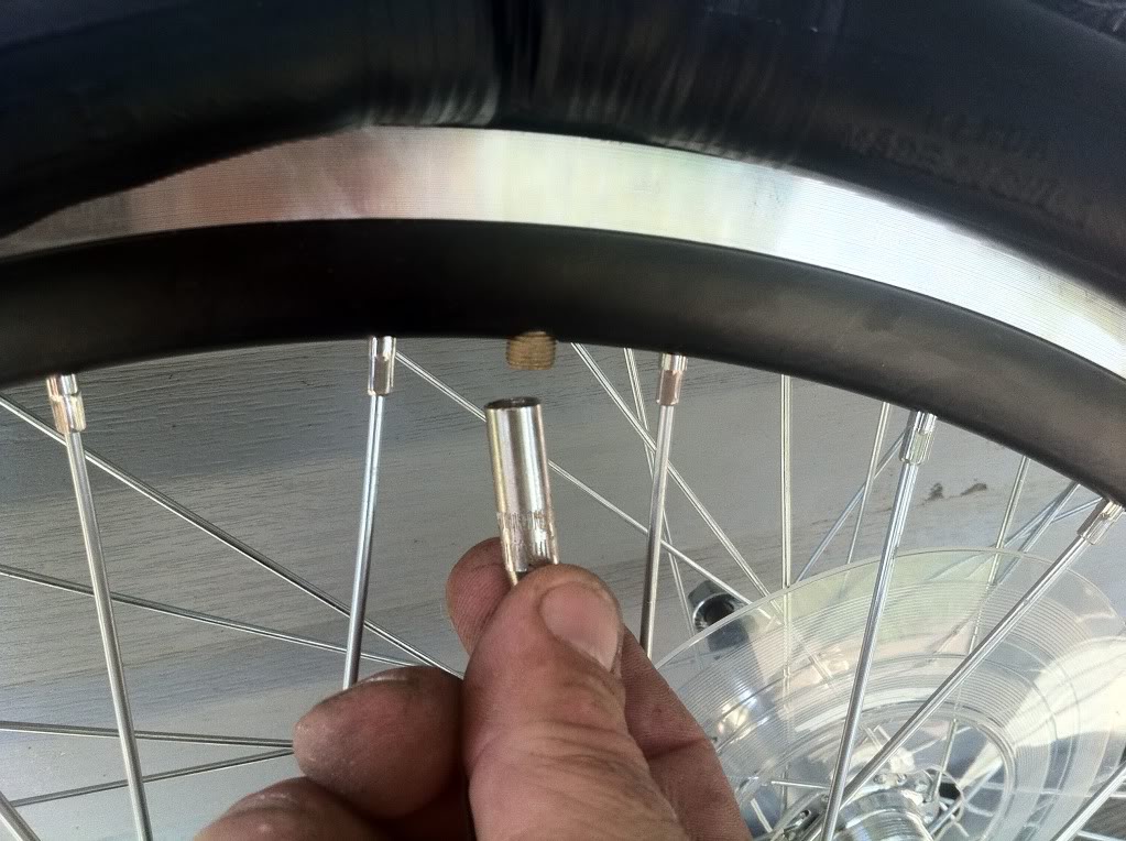 First you start with your bike upside down and take off the wheel. This install is for a rear wheel so if you are doing a front you can skip by some things.