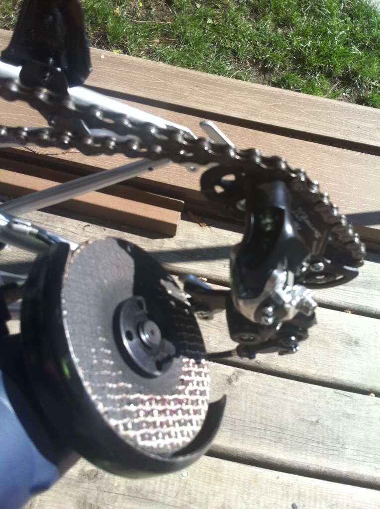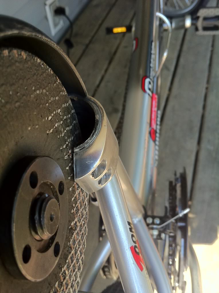This bike has a different seat post clamp. Its large with 2 bolts sunk in and the usual method wouldn't work. So I again took out the grinder...
