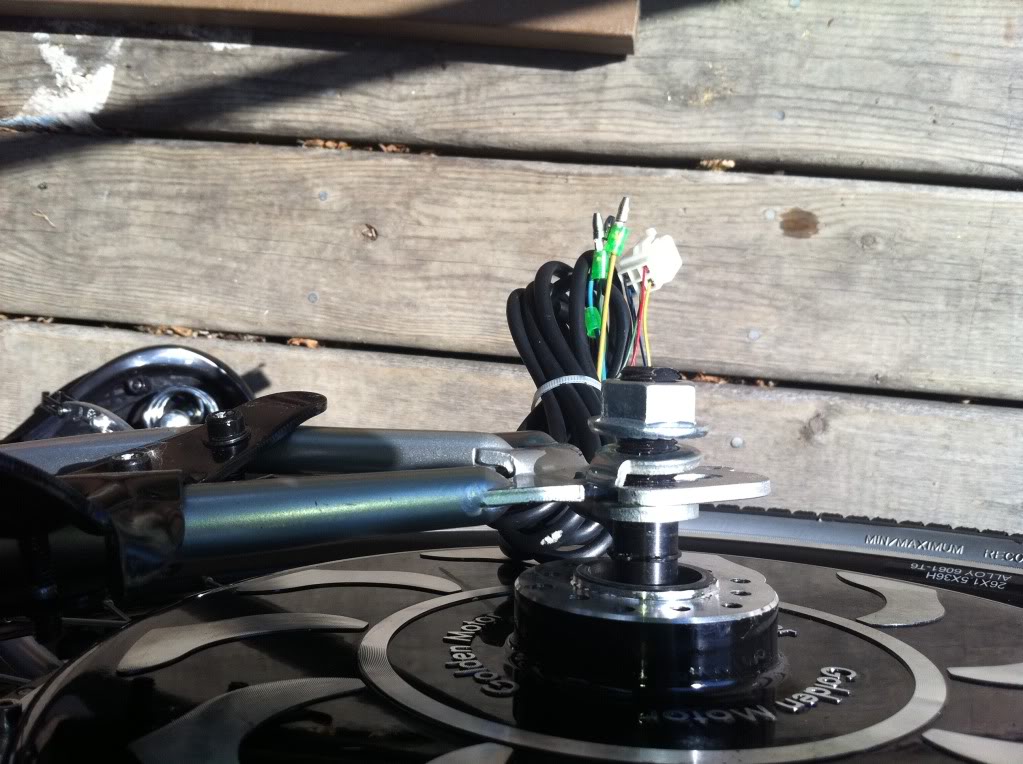 Next if you are going to use a disk brake install the brake disk to the other side. In most cases I find using a spacer ring behind the disk is a good idea as it will help keep the activator from rubbing on the motor. No picture for this at this time as this build did not use a disk brake. Maybe I’ll add one in later.