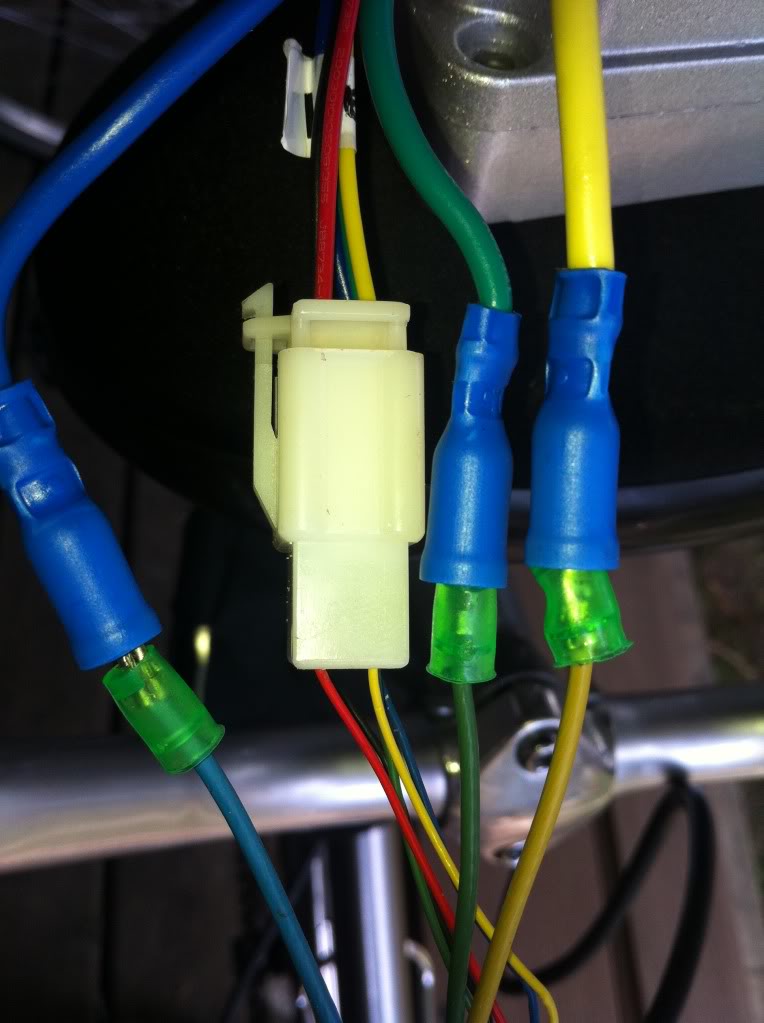 Next the 4 wires that come from the 2 button switch. The yellow and red are usually in a green plug. That is for the red button on the switch usually used for cruise control. The blue and green is for the green button which we will use for the horn.