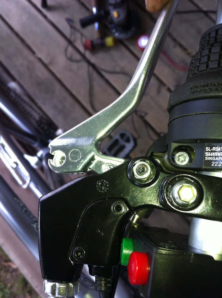 The motor is now installed; let's move on to the controls. First the brake levers need to be removed, the brake cables can stay you are just replacing the handles.