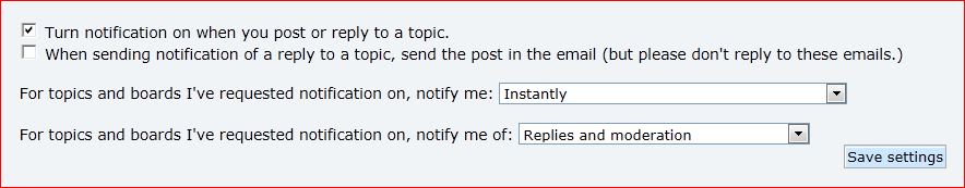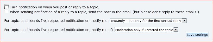 Simply select the check-box to turn notifications on and then set the other two drop-down menus to whatever you prefer: