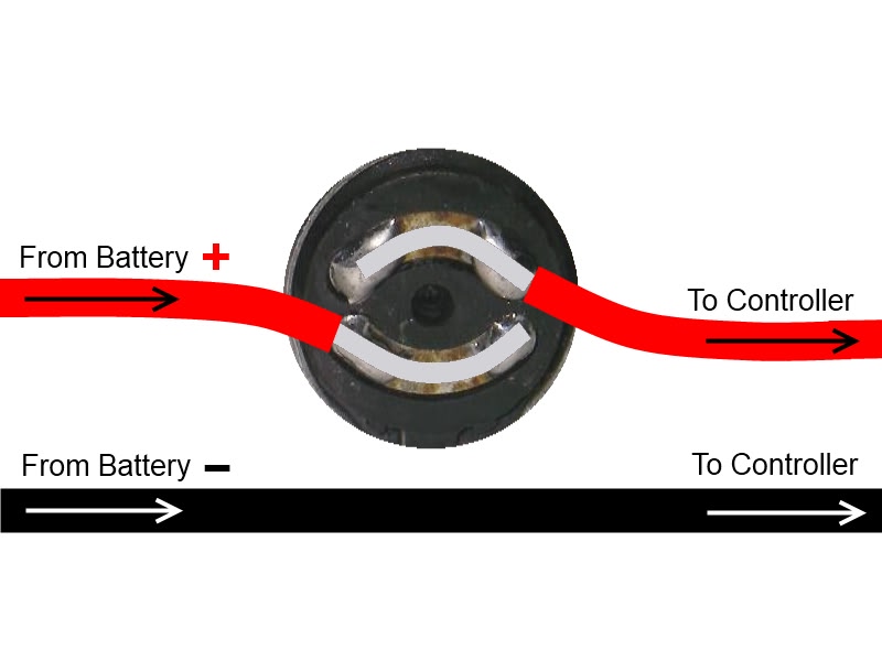 The switch should be connected into the positive power cable as shown in the diagram below: