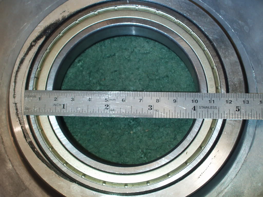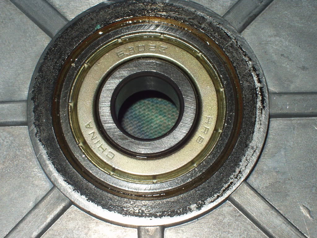 The left hand bearing has an unusually large inside diameter (85mm) to allow it to fit over the outside of the stator's tubular extension piece that houses the speed controller.