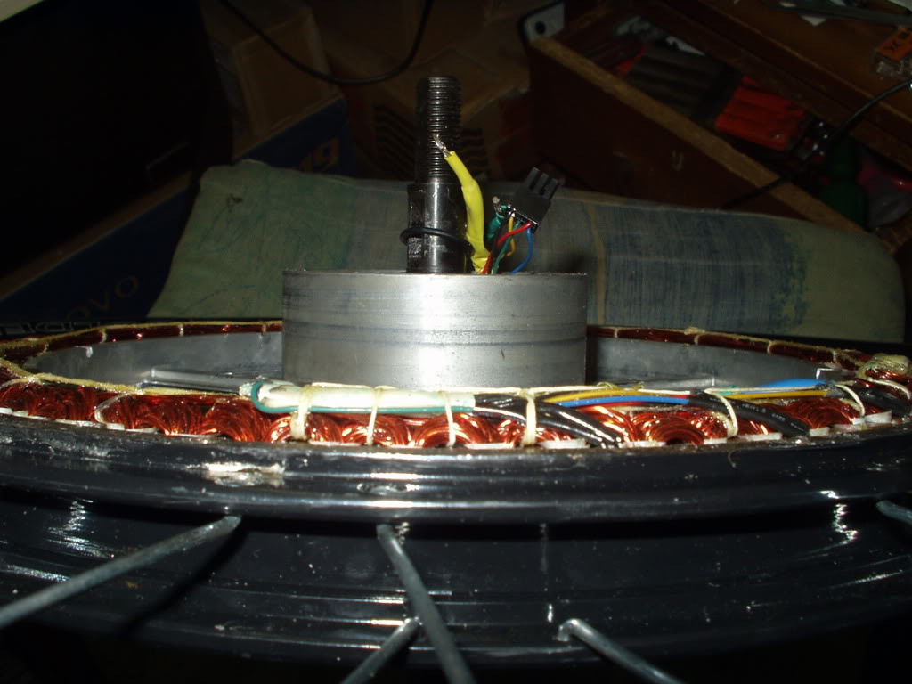Once the stator is completely clear of the magnets, you should be able to take hold of the axle and then simply withdraw the whole stator assembly.