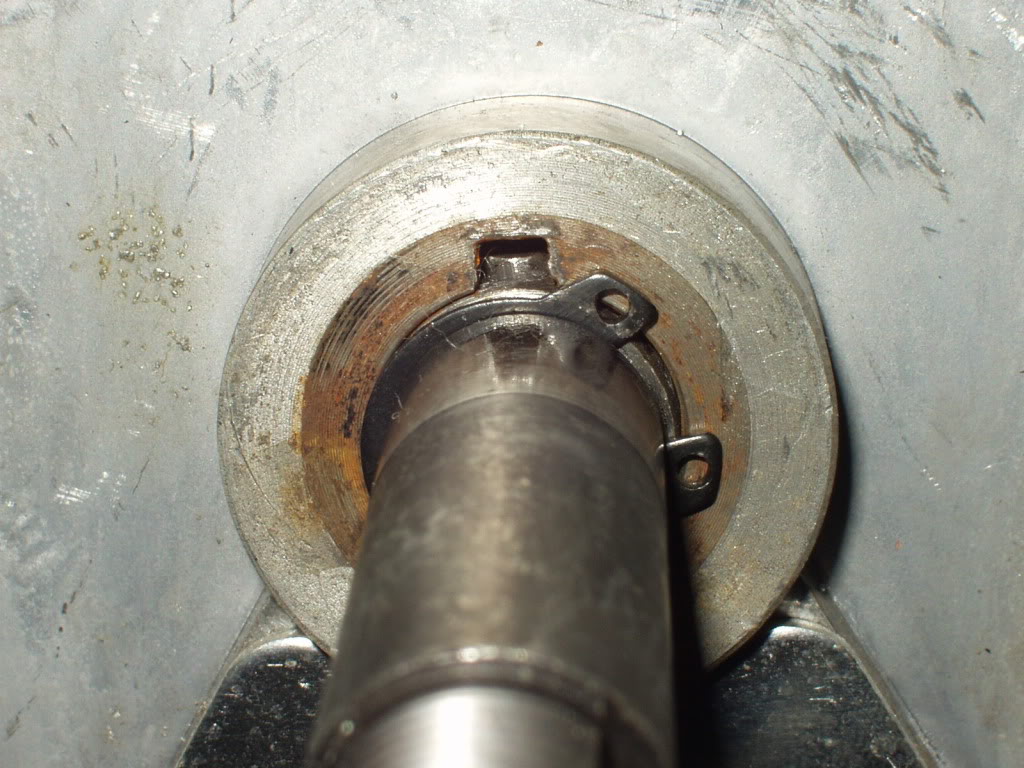 The inside of the bearing fits nicely over the machined surface of the axle next to the circlip: