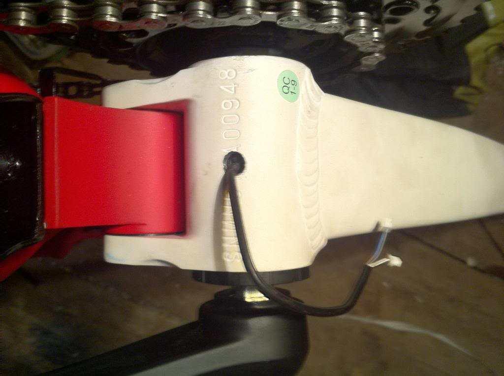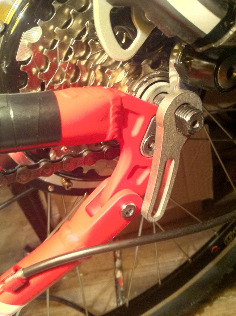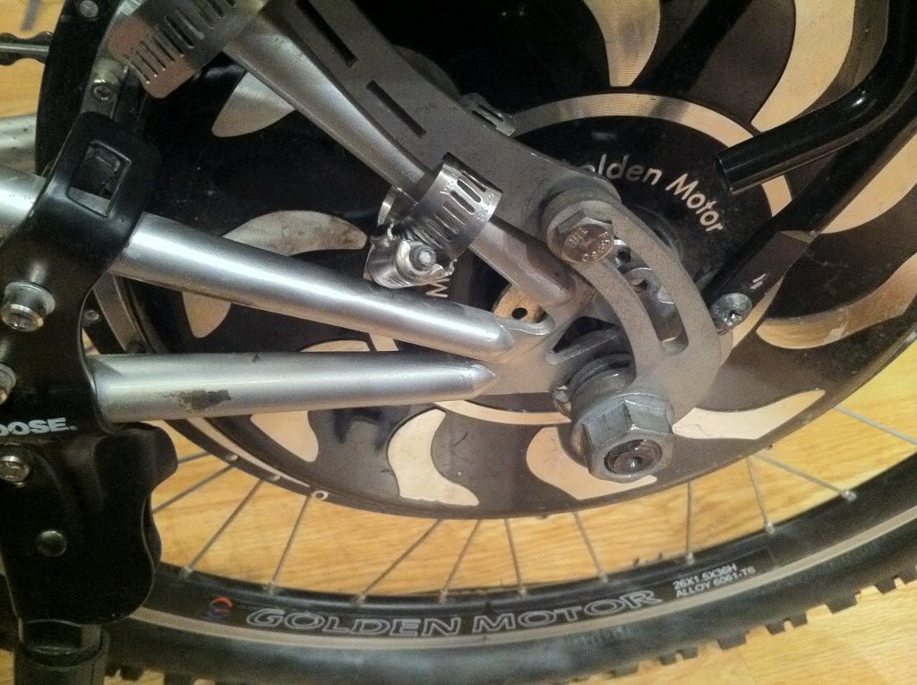 Now I decided to add torque arms. Probably don't need them on a rear Smart Pie set in the dropouts so well but I like them. I tried the Rear torque arm in the recommended position it hits the frame of the bike. Remember the bike is upside down.