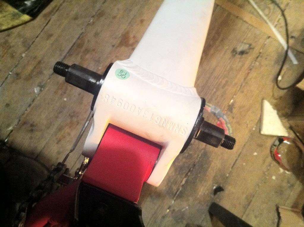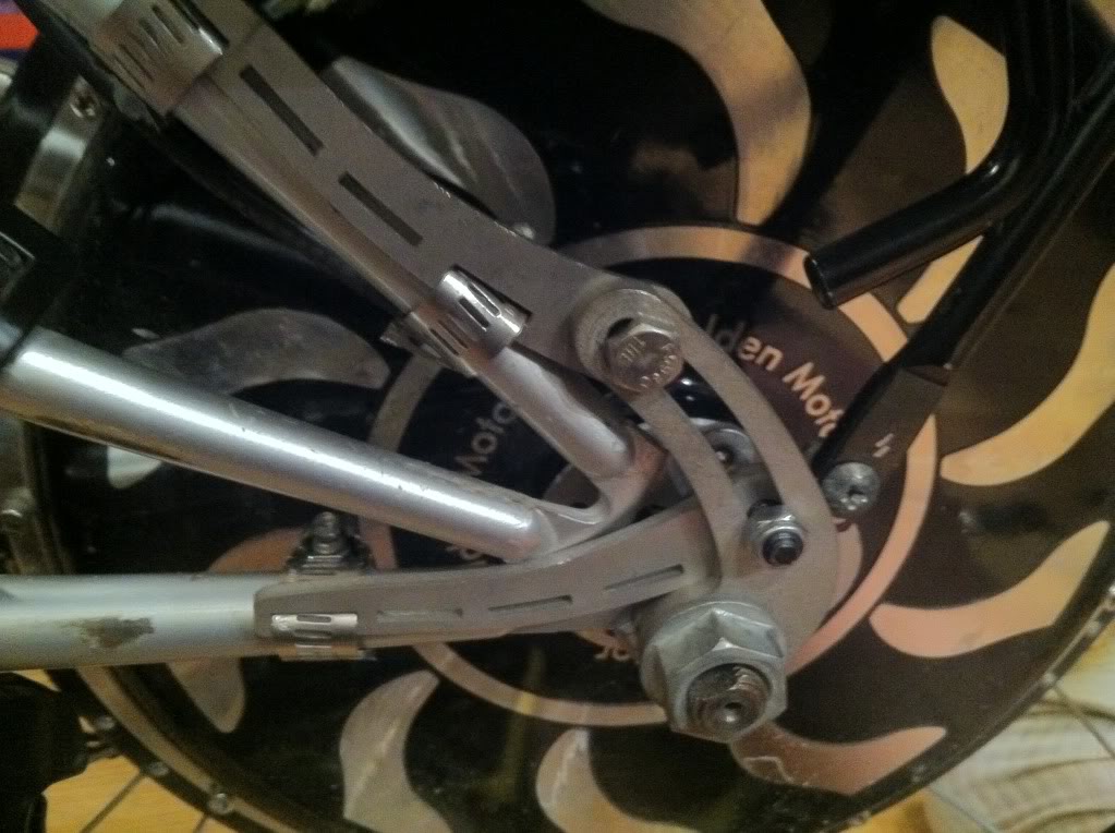 Also if you notice I didn't have mounts for the front fender so I used parts from two rear toque arms to create mounting eyelets. Its a bit of an expensive fix but works well. Sometimes its too easy to just pull parts from inventory without considering the cost.