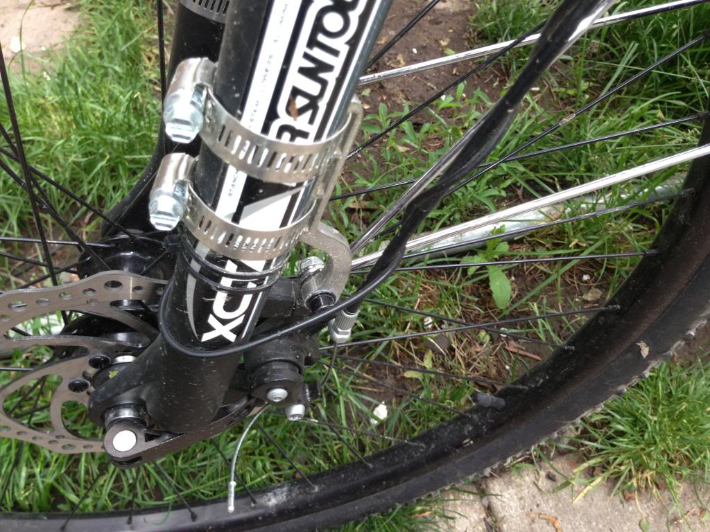So the rear torque arms go back in the drawer and I try the front torque arm on the rear wheel.