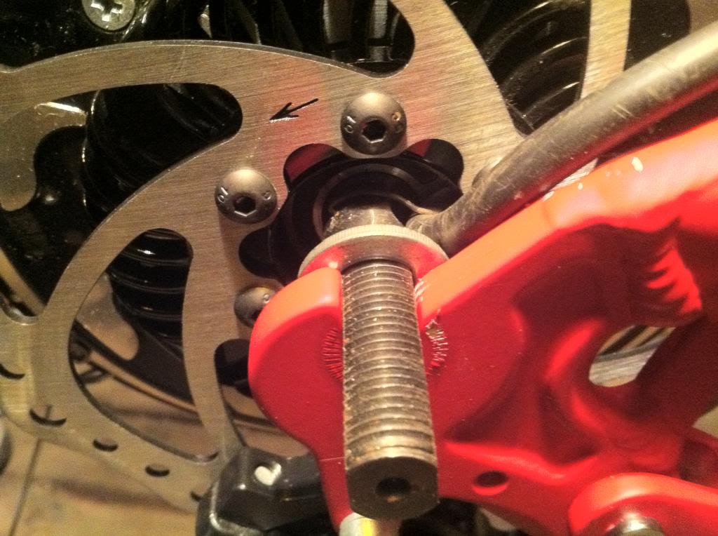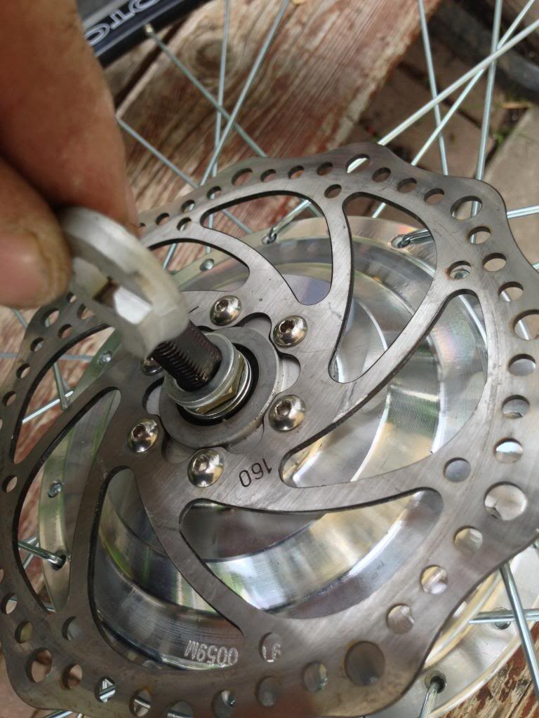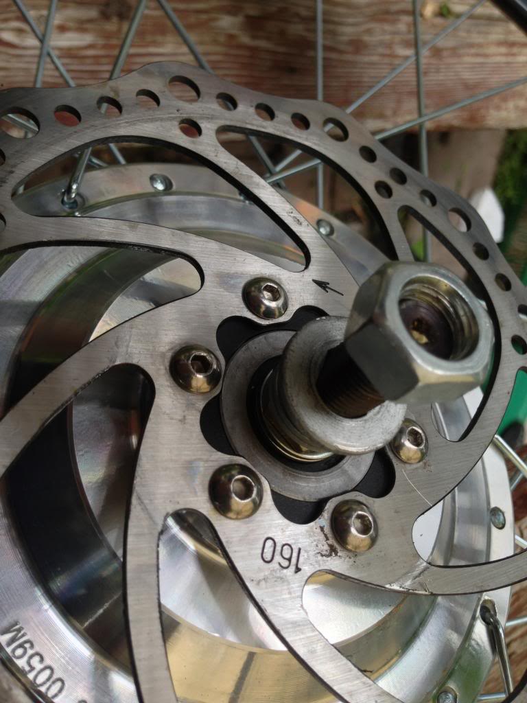Voila! all though the you can see it that well in the picture the disk is now centered and the wheel spins freely.