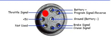 This was actually a very simple thing to do. First I located the throttle signal input on the plug coming directly out of the MP3 in this diagram. The red dot in this picture is it.