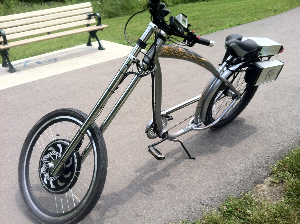 Damn, that sure is a good looking design. I like the way the upper tubing line flows from front to rear.  Gary's battery collection over the rear wheel looks cooler, tho.  And to be honest, if I was selling EV stuff, I'd want to have a bike that would smoke the front tire:)