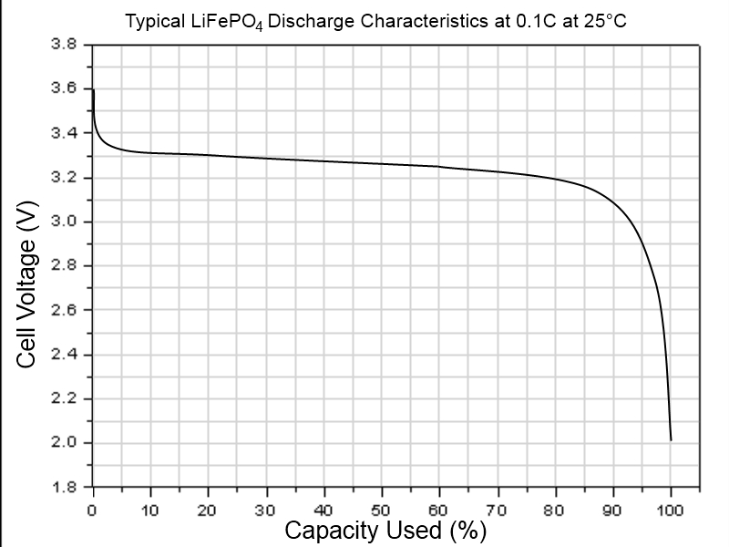 If you look at the following discharge curve you can see that the cell voltage remains reasonably level until it gets near to the end of the discharge cycle: