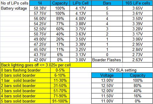 )Here is a very neat little gauge that shows the approximate battery capacity based on the battery voltage, I have one of these waiting to be fitted into my 48V 10Ah GM Battery: