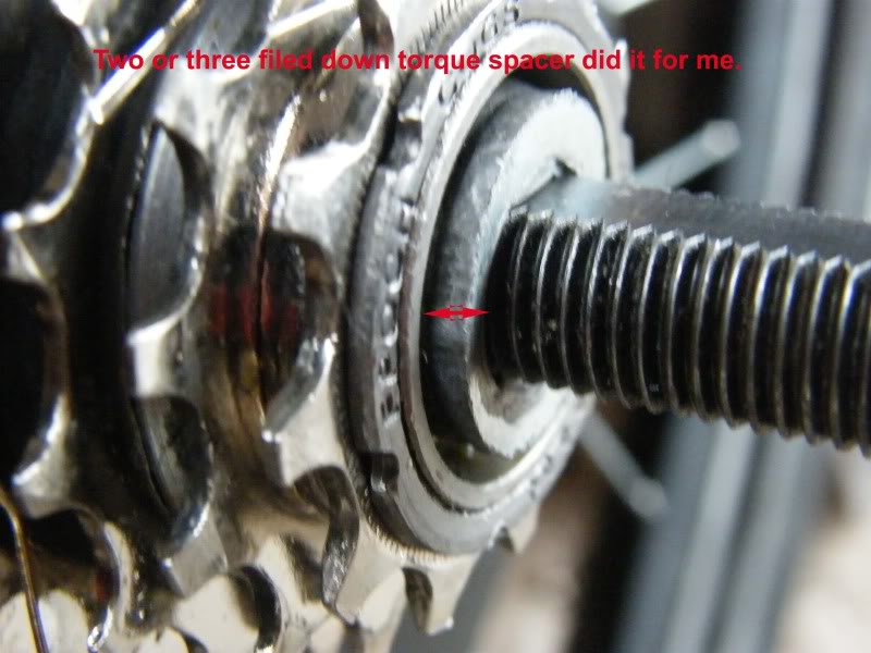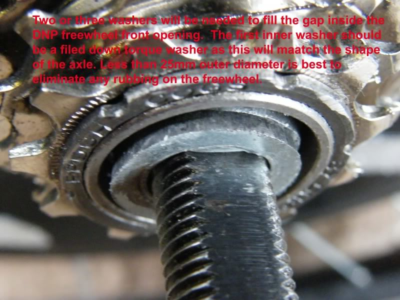 In some cases, you may also have to reduce the outer diameter of the spacer washers using a file or angle grinder etc. to ensure they fit inside the freewheel with touching it: