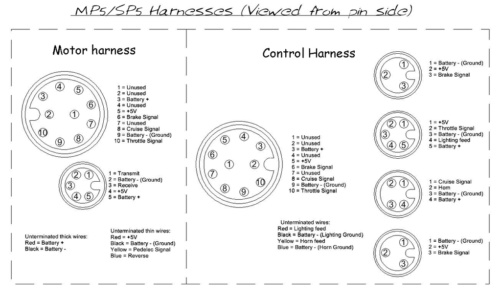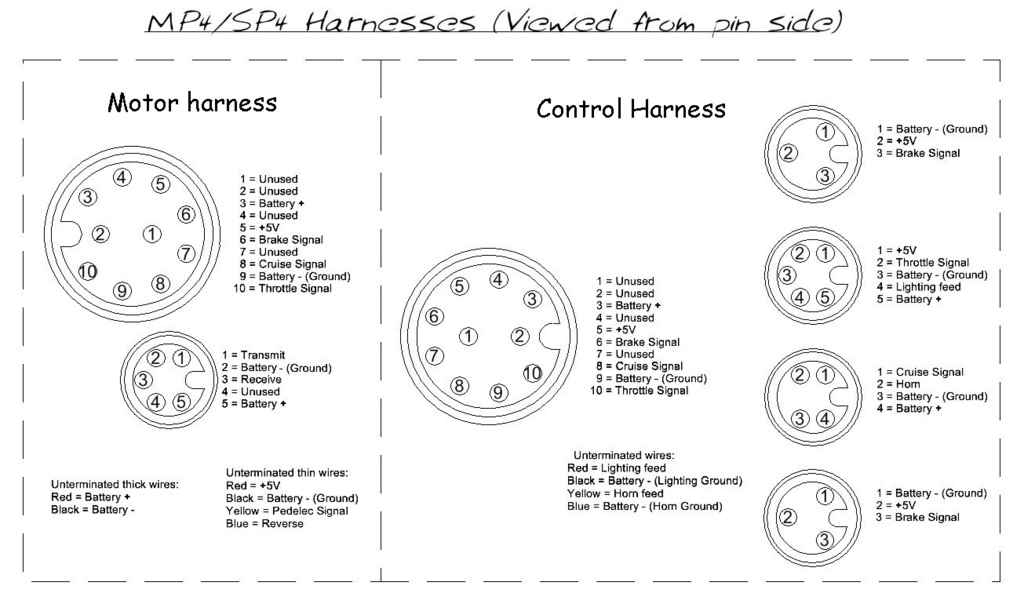 The wiring of the MPIII, MP4 and MP5 motors is very similar except the MP5 had the additional +5V supply on the controller's 5 pin connector.